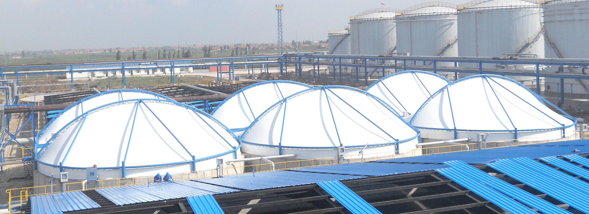 大型池體(如污泥氧化溝、濃縮池、消化池)的氣體收集及污水池處理等是生態(tài)環(huán)保的一項(xiàng)大工程。膜結(jié)構(gòu)材料特有的大跨度、韌性好、耐腐蝕、使用年限久等性能恰恰滿(mǎn)足,為關(guān)愛(ài)人民,構(gòu)建和諧社會(huì),創(chuàng)建優(yōu)美的生活環(huán)境貢獻(xiàn)力量。