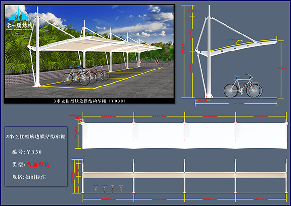 立柱型軟邊膜結(jié)構(gòu)車棚-定制款