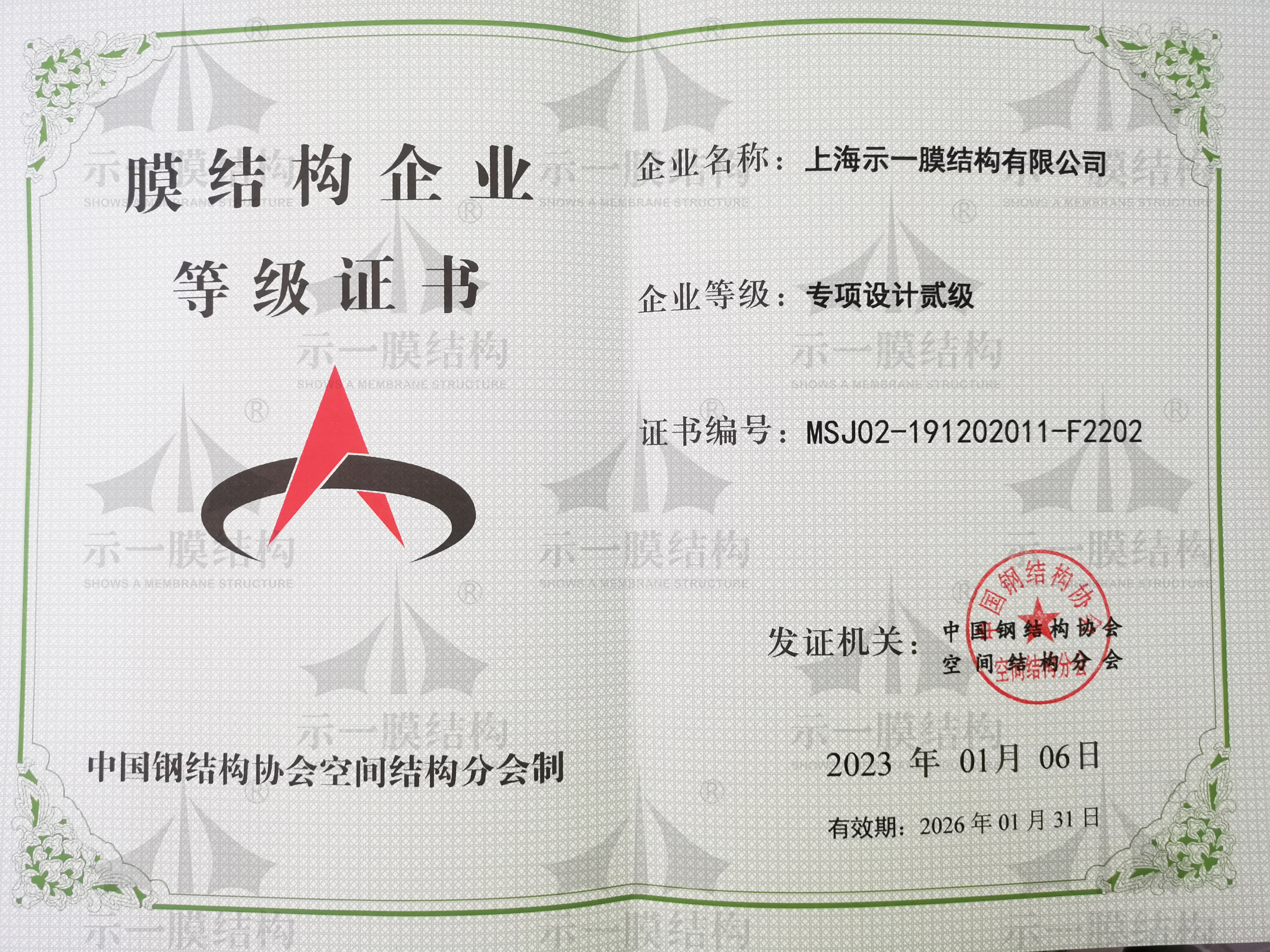 上海示一膜結(jié)構(gòu)-膜結(jié)構(gòu)專項(xiàng)設(shè)計(jì)貳級(jí)