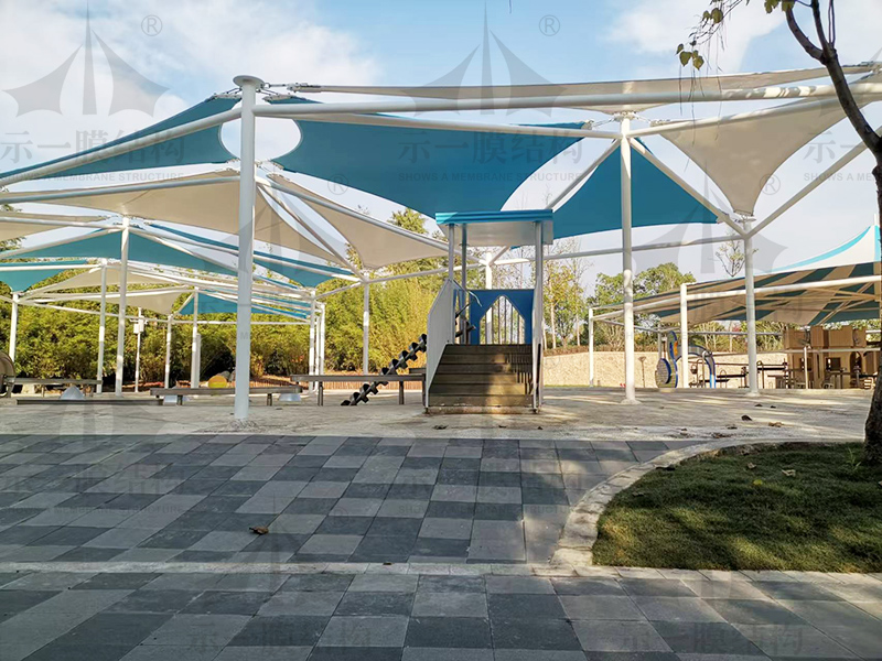 5、施式周期短:膜材裁剪、拼合成形及骨架的鋼結(jié)構(gòu)、鋼索均在工廠加工制作,現(xiàn)場(chǎng)僅需組裝,施工簡(jiǎn)便,故施工周期比傳統(tǒng)建筑短。