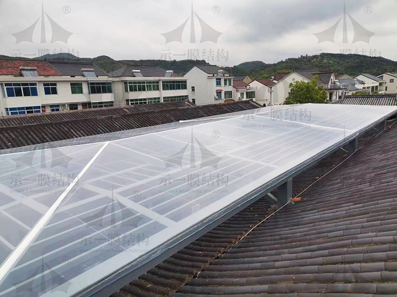 ETFE膜材具有獨特的形式和過硬的質(zhì)量因而得到越來越多客戶的喜愛。同時ETFE膜材具有良好的工程技術特性,例如撕拉極強、抗張強度高、中等硬度、抗沖擊能力、伸縮壽命長、裝飾性好,自潔性好等一系列特點。目前ETFE膜材被廣泛運用于走廊通道雨棚、室內(nèi)裝修,屋面膜結構、商業(yè)街等等。