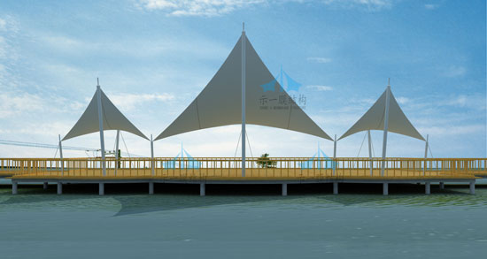 膜結(jié)構(gòu)又稱為索膜結(jié)構(gòu)、張拉膜、張力膜亦或是空間膜。它是一種建筑與結(jié)構(gòu)完美結(jié)合的結(jié)構(gòu)體系。它是用高強度柔性薄膜材料與支撐體系相結(jié)合形成具有一定剛度的穩(wěn)定曲面,能承受一定外荷載的空間結(jié)構(gòu)形式。其造型自由、輕巧、柔美,充滿力量感,阻燃、制作簡易、安裝快捷、節(jié)能、易于、使用安全等優(yōu)點,因而使它在世界各地受到廣泛應(yīng)用。 膜結(jié)構(gòu)建筑作為新的建筑形式于本世紀(jì)五十年代在國際上開始出現(xiàn),至今已有四十多年的歷史,特別是到了七十年代以后,膜結(jié)構(gòu)的應(yīng)用得到了迅速發(fā)展。膜結(jié)構(gòu)的出現(xiàn)為建筑師們提供了超出傳統(tǒng)建筑模式以外的新選擇。