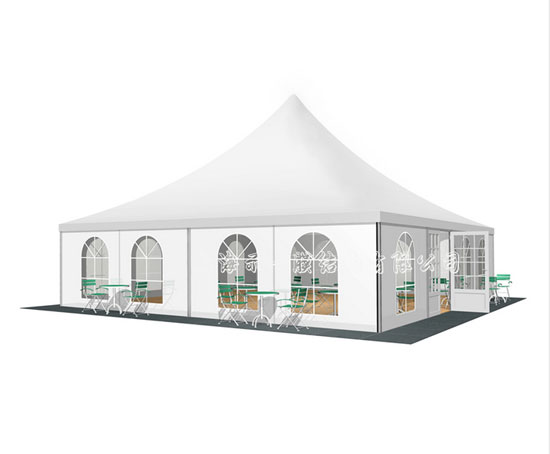2、第二種是尖頂篷房。底面呈正方形,篷房頂像塔尖一樣。外形高雅。