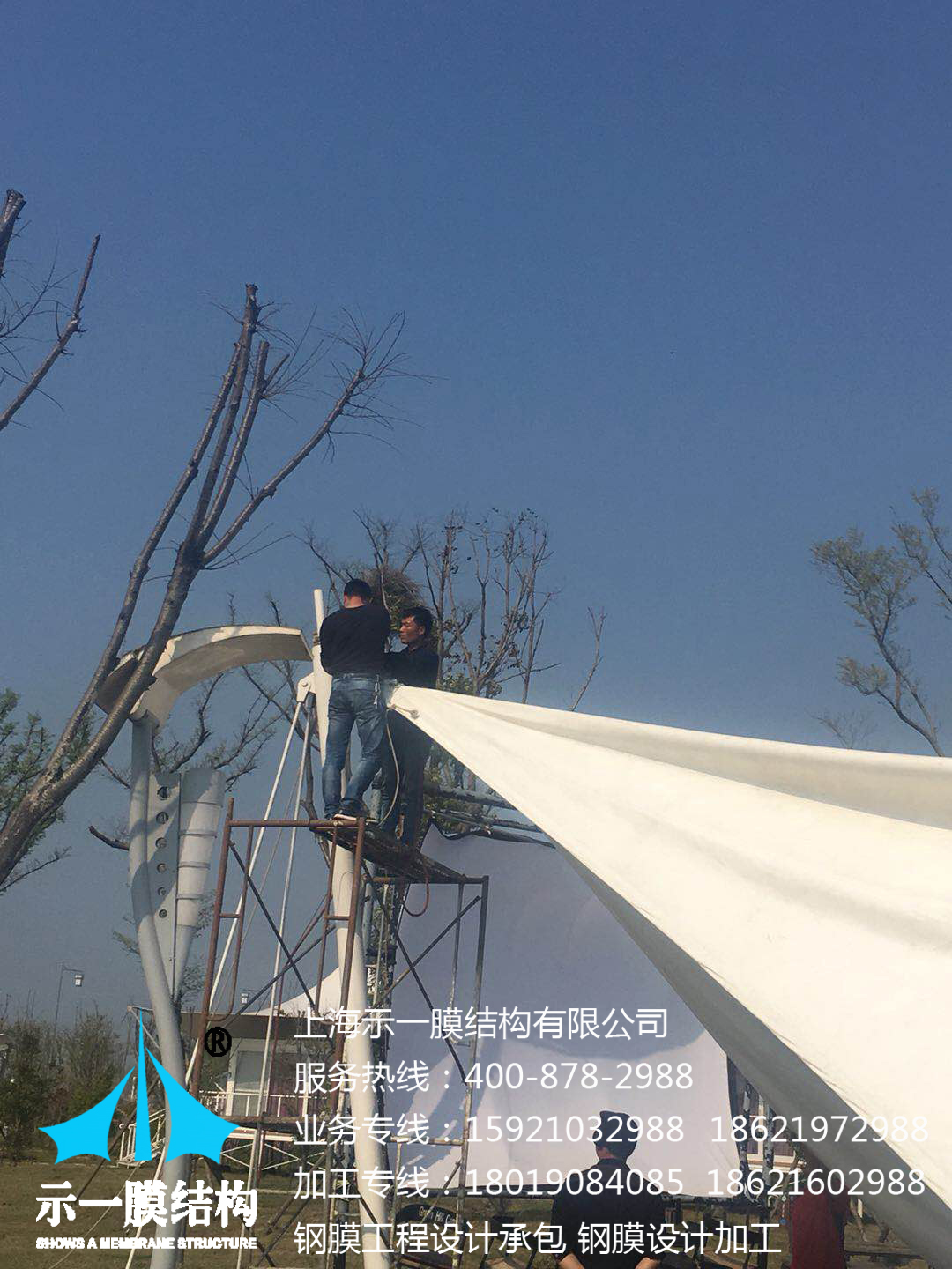 今天小編就想帶著大家來了解一下膜結(jié)構(gòu)建筑工程中膜布的安裝步驟。膜布的安裝可以大致分四部分來說。1、按照施工安裝方案搭設(shè)安全穩(wěn)固的高 ...