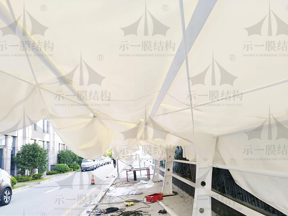 上海示一膜結(jié)構(gòu)公司擁有專業(yè)的營銷、技術(shù)、加工、安裝、工程管理團隊為您服務(wù)!承接全國各地膜結(jié)構(gòu)工程!誠信經(jīng)營、質(zhì)量保證、合作共贏!
