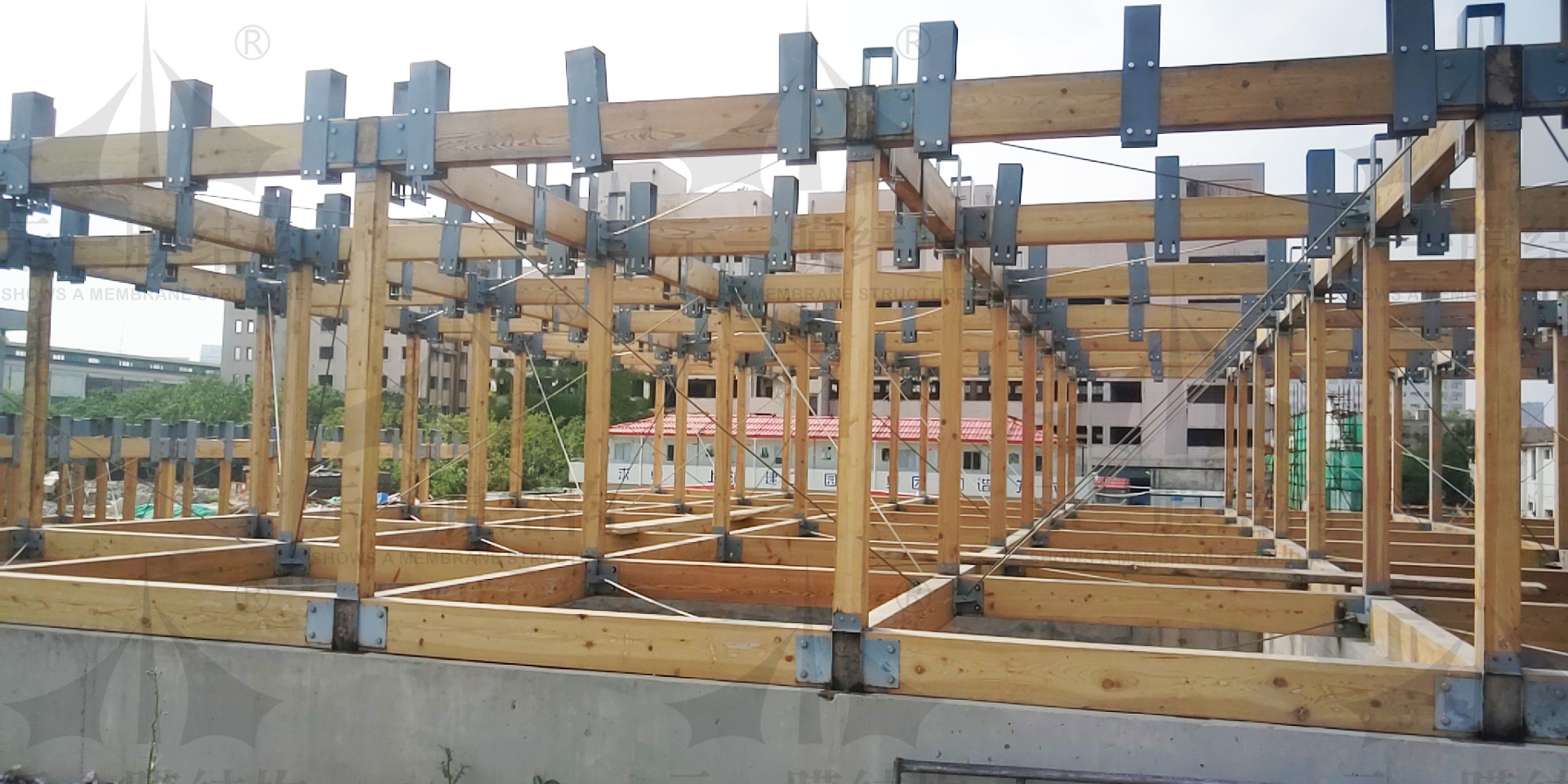 由上海示一膜結(jié)構(gòu)有限公司承建的浦江充氣枕主體木結(jié)構(gòu)工程如火如荼的進(jìn)行中,在這炎熱的酷暑中為膜結(jié)構(gòu)工程奮斗在前線工地的可愛小伙伴們辛苦了。