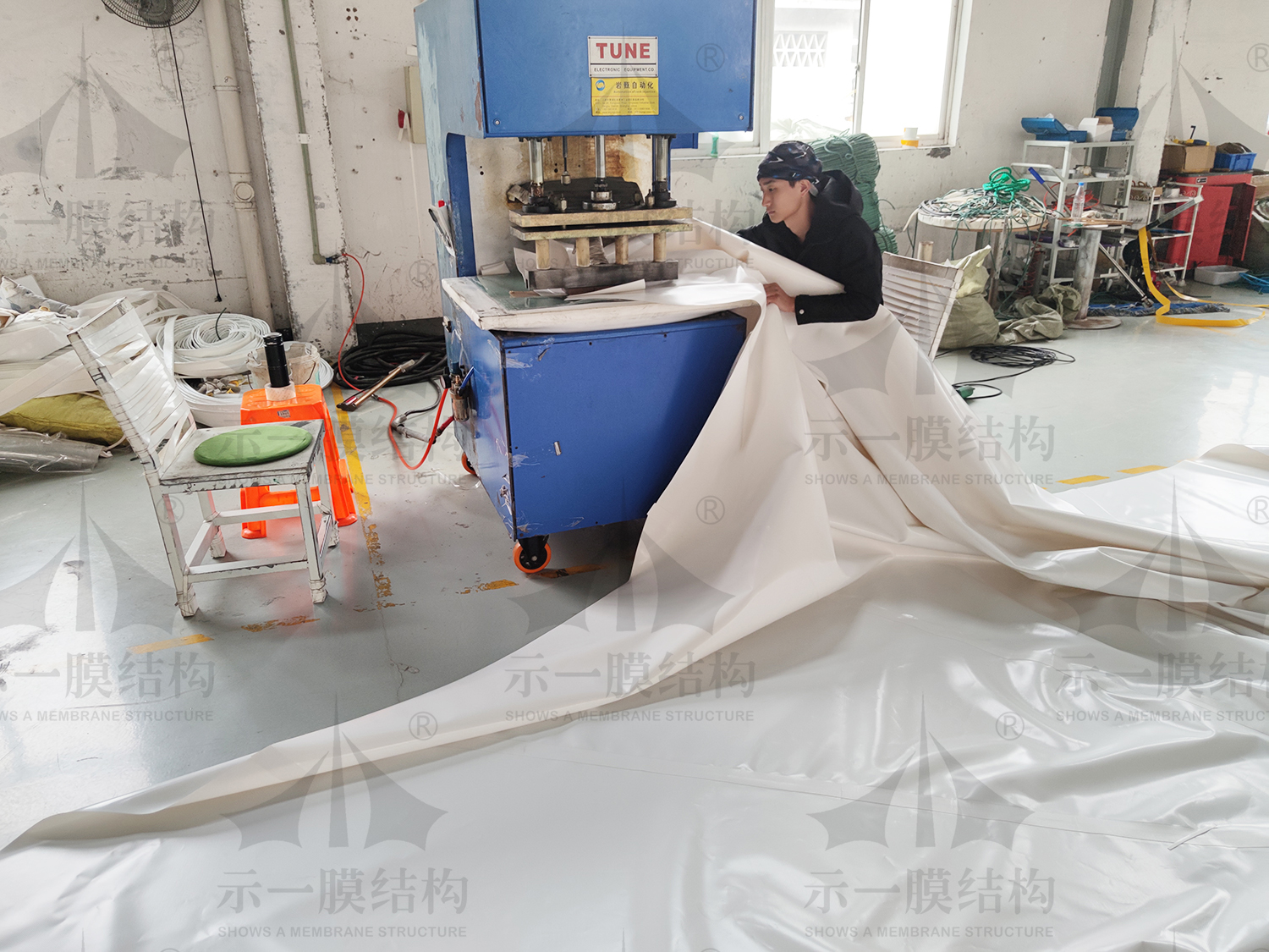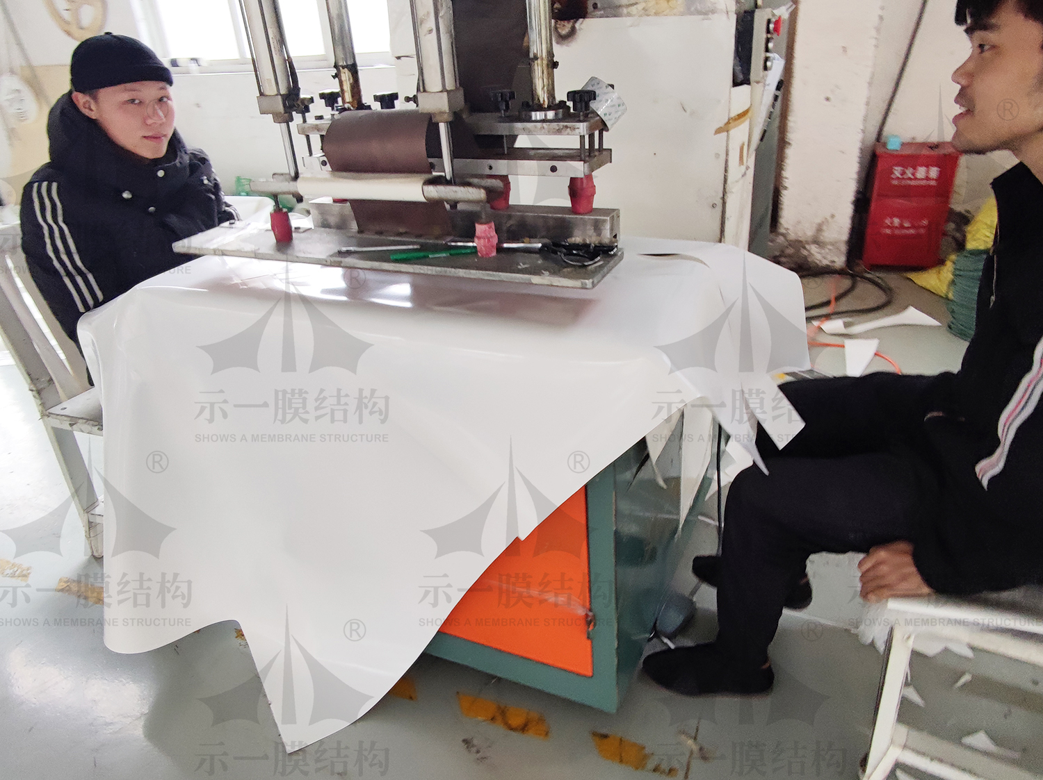 今天跟隨小編兜轉(zhuǎn)示一工廠現(xiàn)場,我們?nèi)?a href="http://au531.cn/">示一工廠現(xiàn)場看看小伙伴們都在忙什么呢?本著努力學(xué)習(xí)的態(tài)度,我們在示一工廠現(xiàn)場為大家解說膜結(jié)構(gòu)基本的粘合方法。