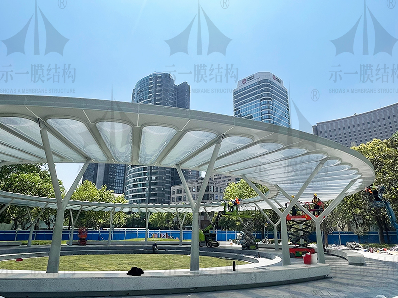工藝原理:氣枕式膜結構是一個相對密閉的空間結構,與傳統(tǒng)空間結構建筑不一樣的是,它通過風 機向結構內(nèi)部鼓風送氣,使膜結構內(nèi)外保持一定的壓力差,以保證膜結構體系的剛度,維持 所設計的形狀。