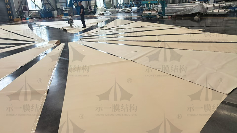 5、大跨度,PTFE薄膜結(jié)構(gòu)建筑物一般不需要內(nèi)部支撐物就能夠用薄膜覆蓋廣大的空間,可以自由設(shè)計(jì)、利用的多樣性空間。