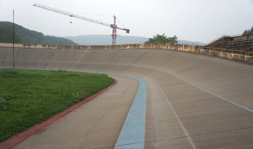 南京體育學(xué)院自行車賽場是十運會賽場之一,膜結(jié)構(gòu)屋蓋投影面積約8000平方米,由內(nèi)外各一道橢圓形空間管桁架環(huán)、16榀徑向管桁架、16對拉壓桿(16根內(nèi)立柱、16根外拉桿)、4對柱間支撐以及16個吊頂錐形膜單元組成空間受力體系。外環(huán)長軸為131.4米,短軸111.7米,內(nèi)環(huán)長軸為88.28米,短軸36.73米。外環(huán)標(biāo)高19.7米、內(nèi)外橢圓形環(huán)高差7.3米,形成類似橢球形的空間受力體系。工程造型優(yōu)美、輕盈,結(jié)構(gòu)體系新穎、受力合理??傆娩摿考s450噸左右,膜材選用白色PVC聚酯纖維。膜結(jié)構(gòu)屋蓋已于去年6月竣工。