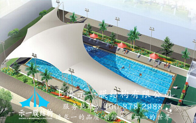 室外泳池遮陽棚或遮陽傘的搭建必不可少,膜結(jié)構(gòu)遮陽棚不僅造型靚麗,更重要的是它防紫外線功能和隔溫效果,讓人們戲水的同時(shí)更覺愜意。展翼膜結(jié)構(gòu)經(jīng)過多年來在膜結(jié)構(gòu)行業(yè)的經(jīng)驗(yàn)積累,設(shè)計(jì)及施工水平俱佳,為您提供獨(dú)特創(chuàng)新全方位的膜結(jié)構(gòu)工程方案。