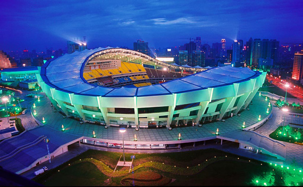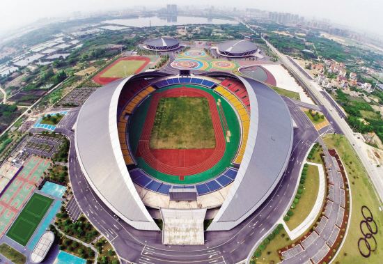 上海周邊的嘉興市體育中心主體育場工程總面積5500平方米,可容納3.5萬名觀眾??磁_采用混凝土框架結構,屋蓋采用鋼管拱形桁架結構,屋面復蓋PVC膜材。該工程是目前我國已建和在建體育場館鋼拱形結構中高度最高、跨度最大的工程之一。