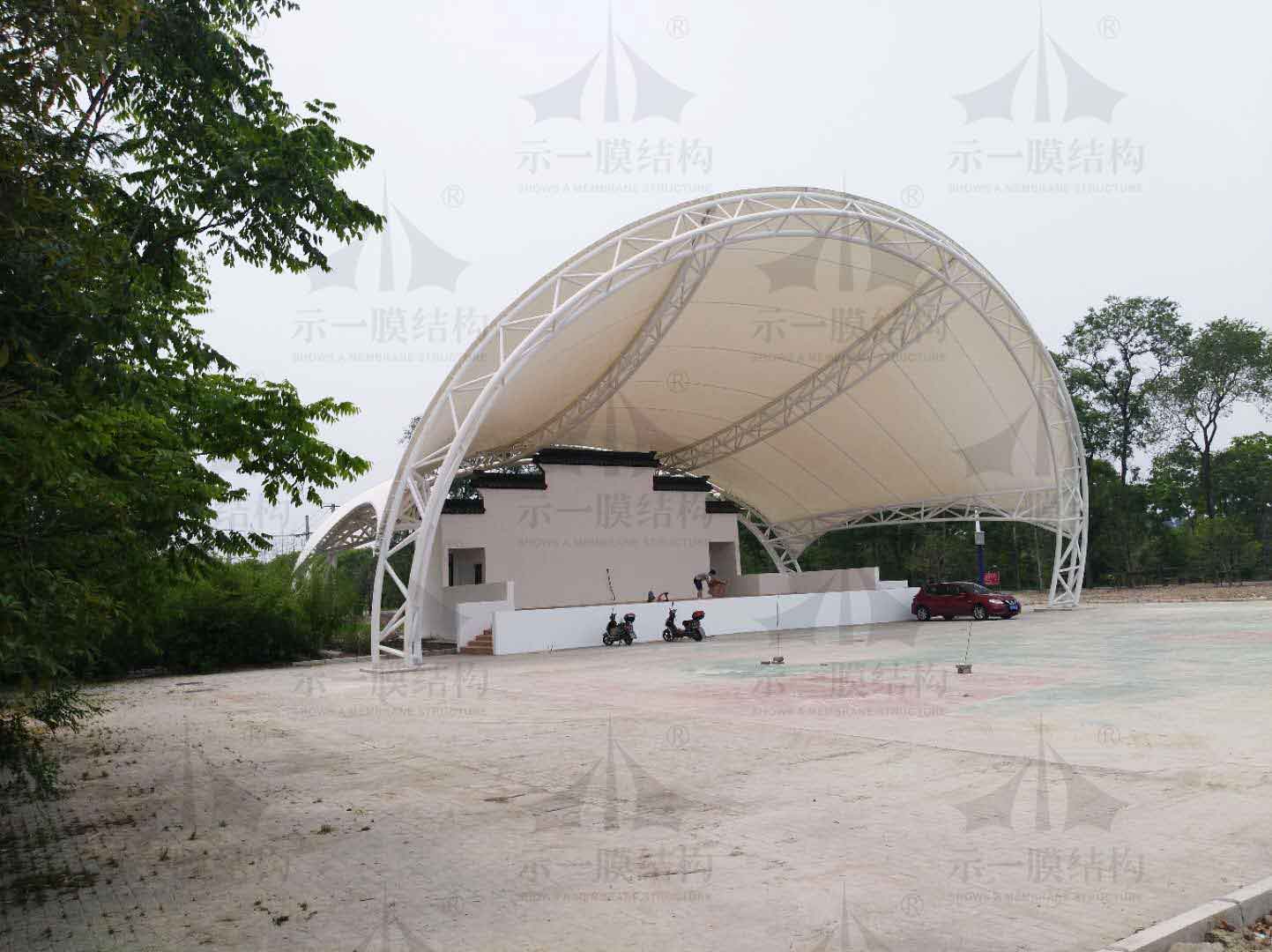 7、使用保險靠得?。?br /> 由于其自重輕,抗震服從比較好;膜布局屬柔性布局,梗概忍受很大的位移,不易小我倒塌;且膜資料一般都是阻燃資料,也不易造成失火。