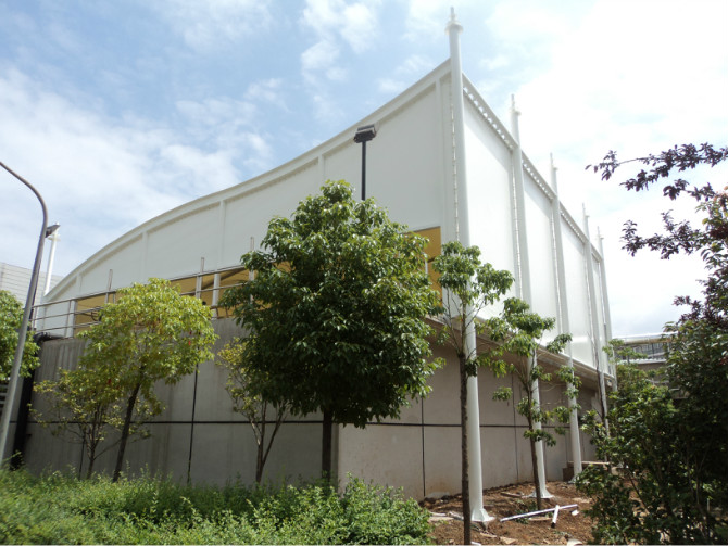 通過分析也不難看出,土壤法除臭的效率,以及使用壽命、能耗、管理、運(yùn)行費(fèi)用的方面的優(yōu)勢,這些優(yōu)勢都實實在在的展示在眼前,并可完全利用,與膜結(jié)構(gòu)污水池加蓋混合使用,可以使得除臭效率更高、壽命長、運(yùn)行管理簡單、能耗低、運(yùn)行費(fèi)用低等等,污水池加蓋膜結(jié)構(gòu)的主要結(jié)構(gòu)形式為反吊,與臭氣的直接接觸面為耐酸耐腐蝕的高強(qiáng)度纖膜材料,使用年限都在20年以上,鋼材更是能達(dá)到50年,中間幾乎不用任何維護(hù),大大的降低運(yùn)行維護(hù)成本,節(jié)省開支。