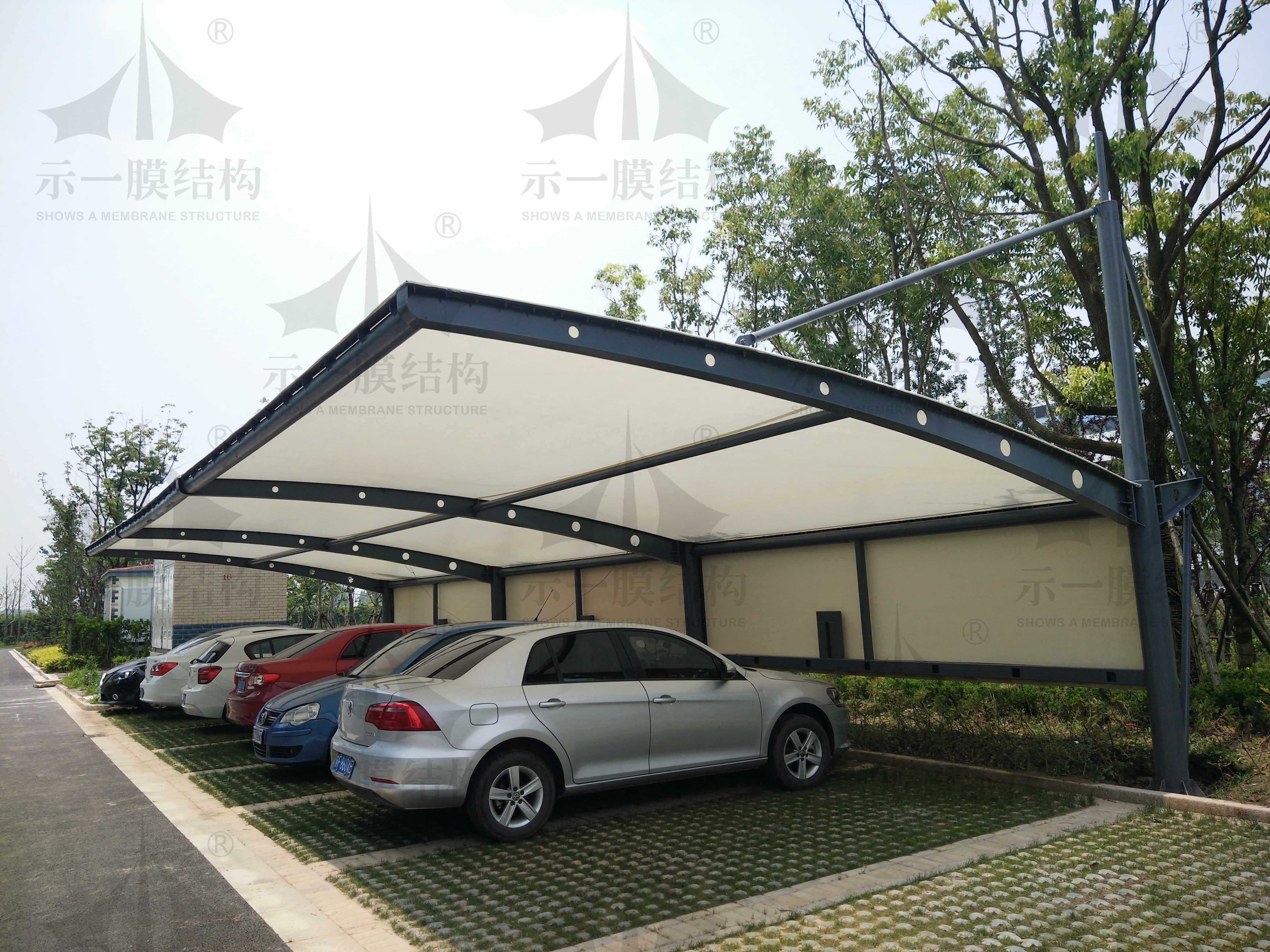 膜結構車棚遮陽棚適用于小汽車、自行車或電動車、公交車停車場等,款式新穎,造型美觀,經濟適用。膜結構車棚的設計技術越來越先進,膜結構材料具有連接可靠、施工方便等特點,最關鍵的是膜材具有足夠的強度和優(yōu)異的力學性能以及抗老化、耐熱、耐腐蝕等性能,確保車輛在炎炎夏日不會受到烈日侵襲。