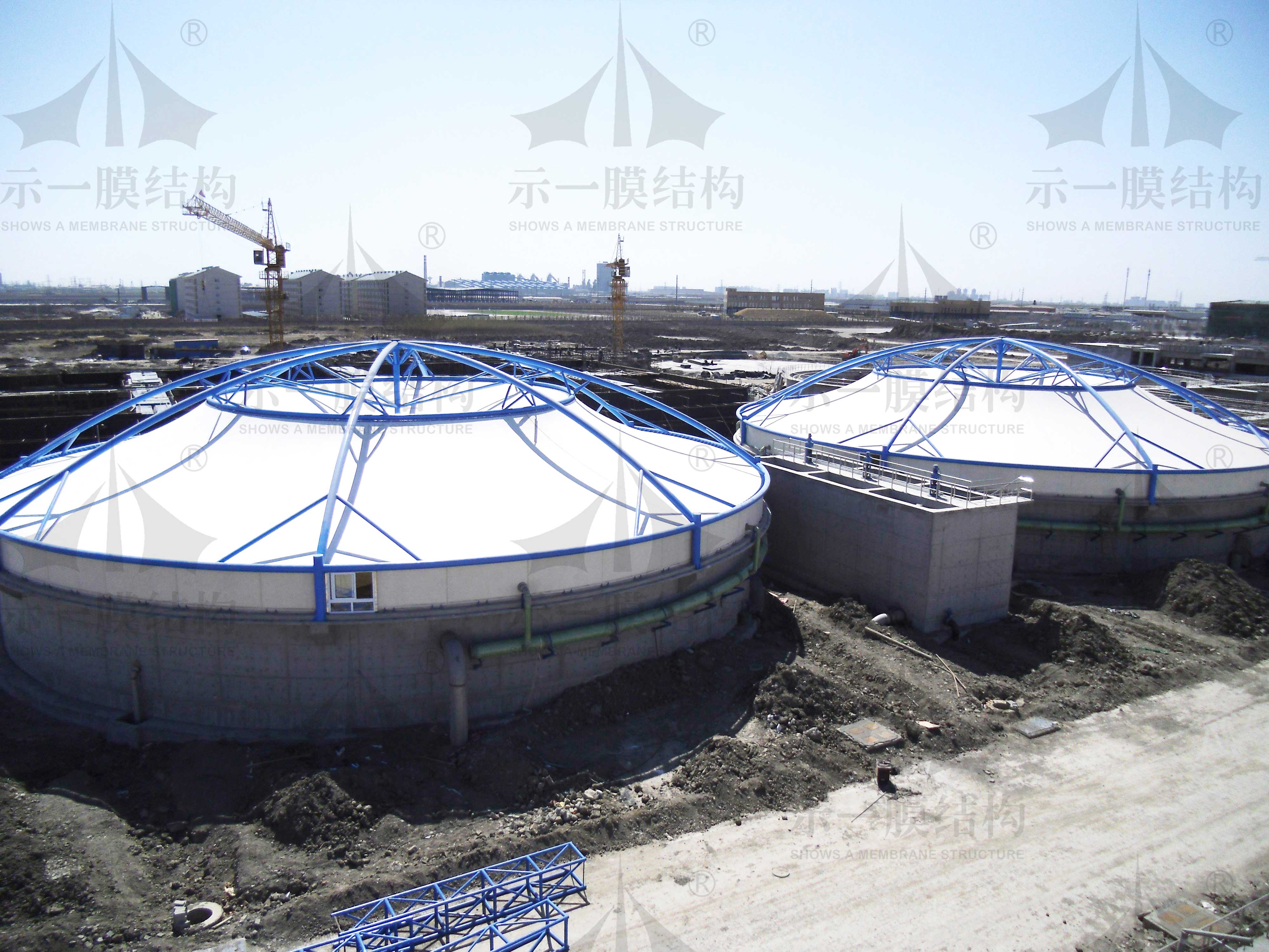 今天我們來圍繞污水池加蓋膜結(jié)構(gòu)氣罩封閉技術(shù)展開話題,隨著技術(shù)的不斷改進(jìn)污水池加蓋膜結(jié)構(gòu)技術(shù)被大力運(yùn)用。污水池加蓋膜結(jié)構(gòu)技術(shù)通常是采用鋼支撐反吊UV膜結(jié)構(gòu)。這種加蓋工藝可以解決鋼結(jié)構(gòu)由于與腐蝕性氣體接觸而帶來的腐蝕問題,發(fā)揮了鋼結(jié)構(gòu)的性能,實(shí)現(xiàn)了結(jié)構(gòu)骨架與覆蓋材料的完美結(jié)合。