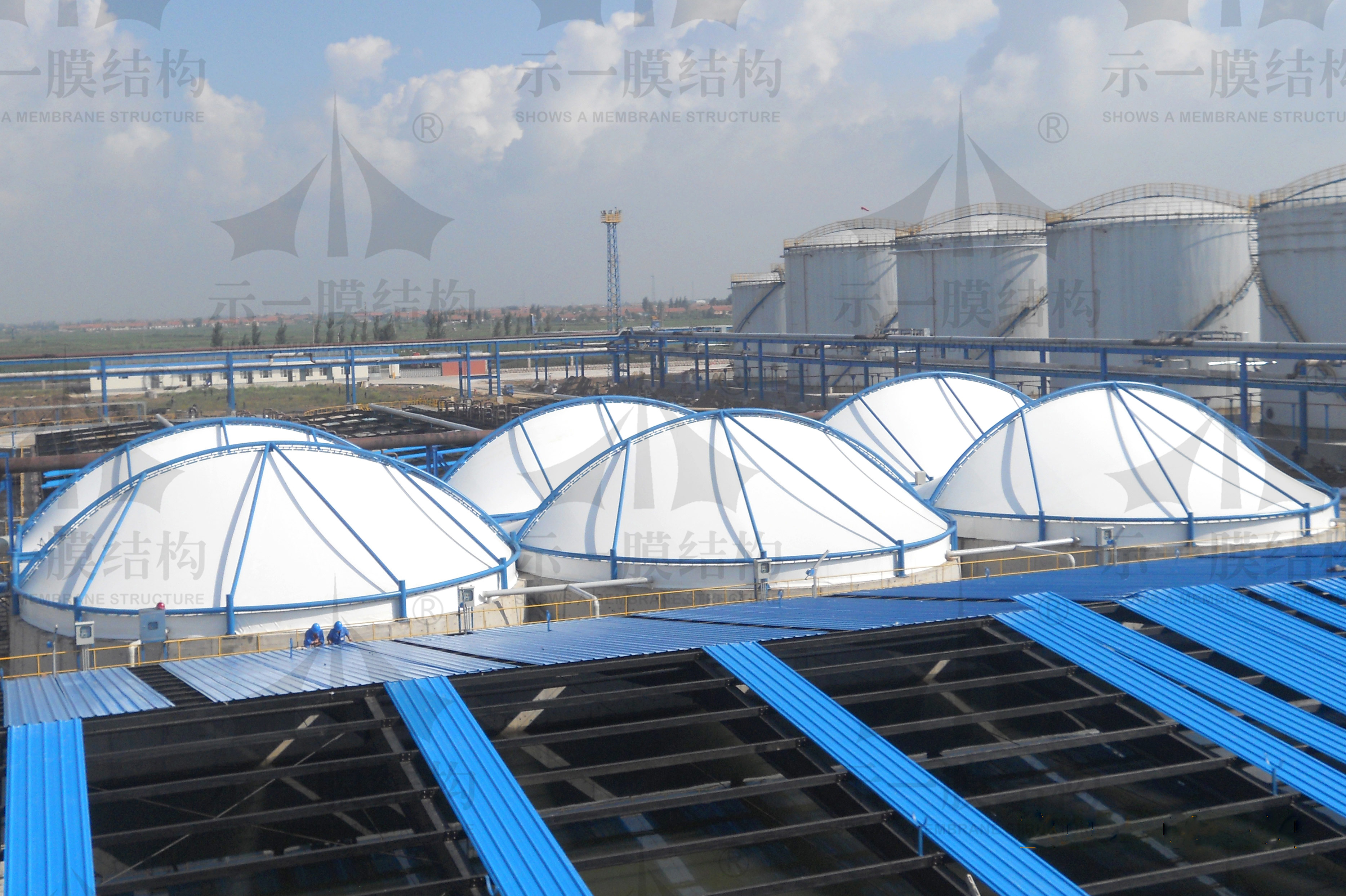 膜結(jié)構(gòu)的使用,可以使得除臭效率更高、壽命長(zhǎng)、運(yùn)行管理簡(jiǎn)單、能耗低、運(yùn)行費(fèi)用低,耐酸耐腐蝕,還美化了環(huán)境,污水池加蓋膜結(jié)構(gòu)基本是優(yōu)化的選擇。