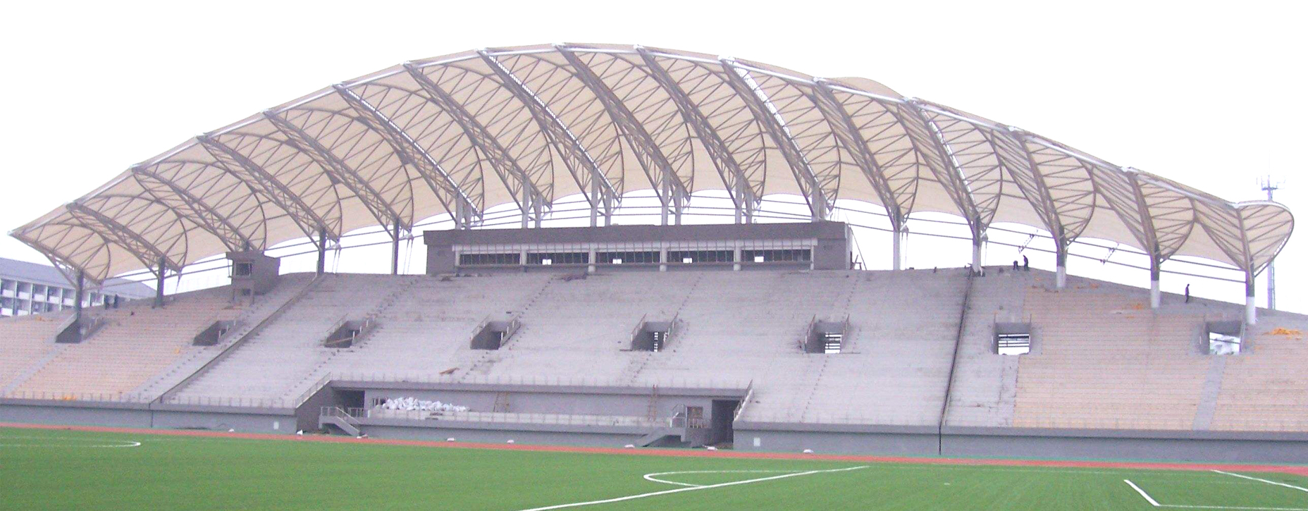 PTFE膜材是在超細(xì)玻璃纖維織物上涂以聚四氟乙烯樹脂而成的材料。PTFE膜材料的織物基材為玻璃纖維,纖維的直徑范圍應(yīng)在3.30~4.05μm 范圍內(nèi),重量應(yīng)大于150g/m。PTFE膜材料的厚度宜大于0.5mm。廣泛應(yīng)用在大型公共設(shè)施:體育場(chǎng)館的屋頂系統(tǒng)、機(jī)場(chǎng)大廳、展覽中心、站臺(tái)等。