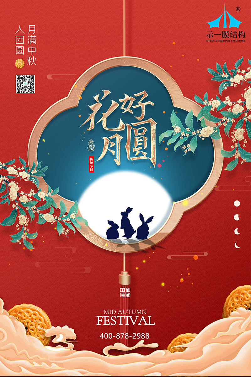 來秋高氣爽,桂花飄香,值此中秋佳節(jié)來臨之際,上海示一膜結(jié)構(gòu)有限公司祝福大家中秋節(jié)快樂,闔家幸福!
