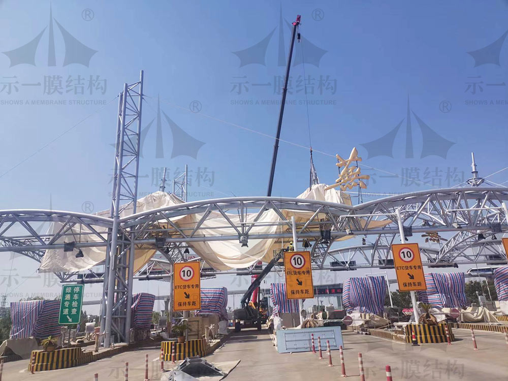 每個收費的膜結(jié)構(gòu)造型都會不一樣,通過精心設計出符合的造型。而膜結(jié)構(gòu)因其造型藝術(shù)柔美、結(jié)構(gòu)輕巧、阻燃抗震、安裝快捷、節(jié)能環(huán)保、自潔性強等特點,逐漸成為了收費站建設的首選結(jié)構(gòu)。