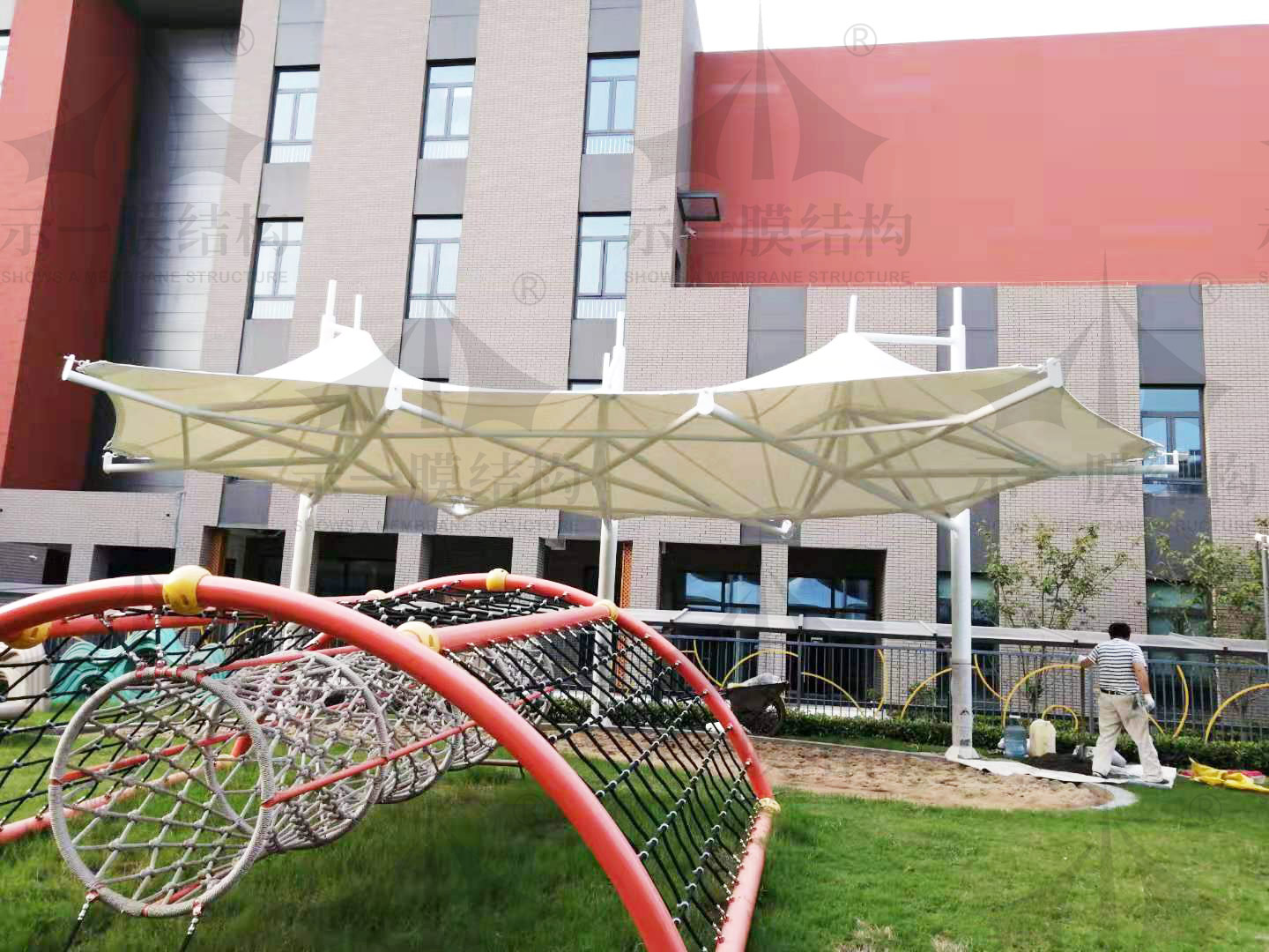 在這樣特殊的日子,學校一定也會有很多活動安排,比如室內(nèi)的手工制作活動,戶外的游戲類活動。說到戶外活動我們不得不來說一說膜結(jié)構(gòu)遮陽棚和膜結(jié)構(gòu)景觀小品。隨著學校綜合品質(zhì)的提高,膜結(jié)構(gòu)遮陽棚和膜結(jié)構(gòu)景觀小品開始入駐校園。膜結(jié)構(gòu)遮陽棚不僅是學校的一道風景線,更是給同學們的戶外活動提供了很好的場地。特別在炎炎夏日,在膜結(jié)構(gòu)遮陽棚下面不用擔心紫外線的照射,沒有了后顧之憂可以暢快的玩是多么開心的事??!
