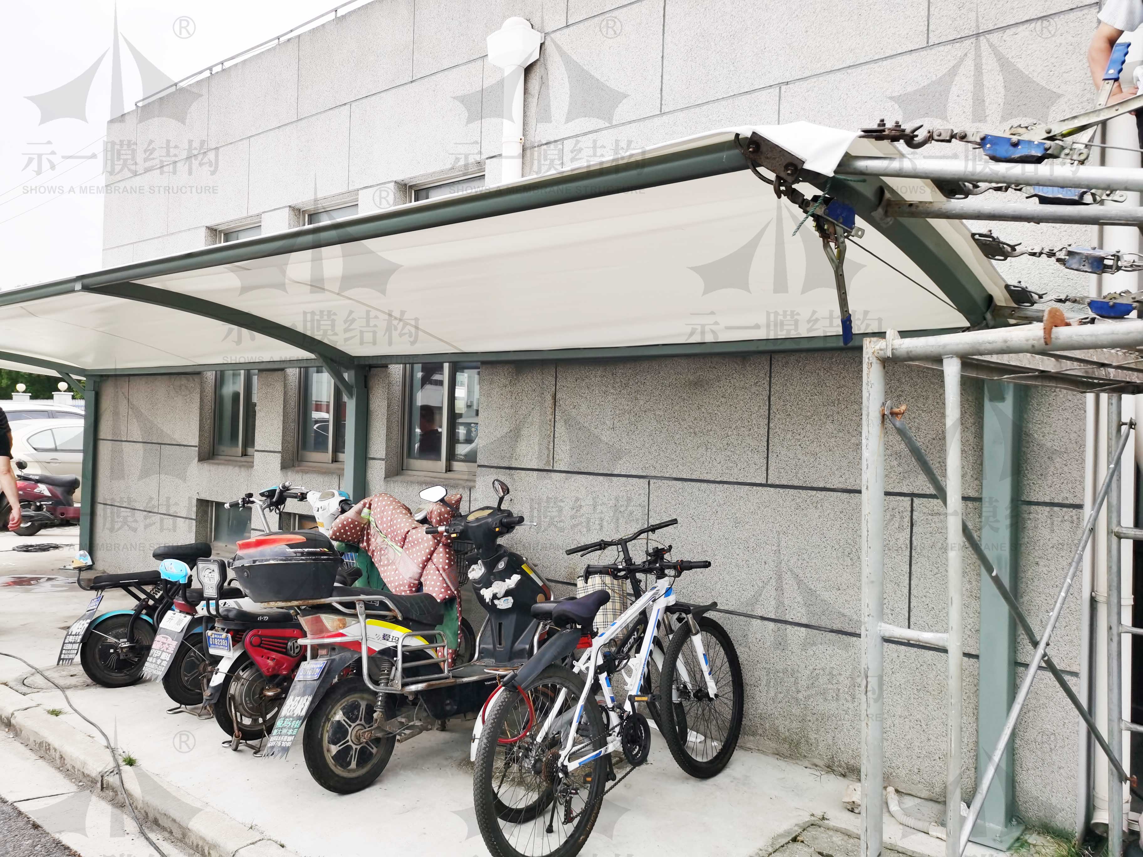 示一膜結(jié)構(gòu)小編前幾期介紹了上半年上海示一膜結(jié)構(gòu)有限公司承擔(dān)的一些膜結(jié)構(gòu)工程,相信大家也有所了解。在上半年里膜結(jié)構(gòu)停車棚我們也是制作了幾個(gè),造型上都是不同的。今天示一小編來介紹一下在坐落在示一膜結(jié)構(gòu)辦事處的膜結(jié)構(gòu)停車棚。