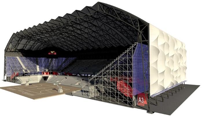 倫敦奧運(yùn)會籃球館是奧運(yùn)會歷史上最大的膜結(jié)構(gòu)臨時場館。其位于北端的高地,非常醒目。這里有12000個座位,舉行過籃球,手球,輪椅籃球和輪椅手球比賽。雖然當(dāng)時預(yù)算緊張,但并不妨礙該籃球館成為2012倫敦奧運(yùn)會最具視覺沖擊力的建筑。