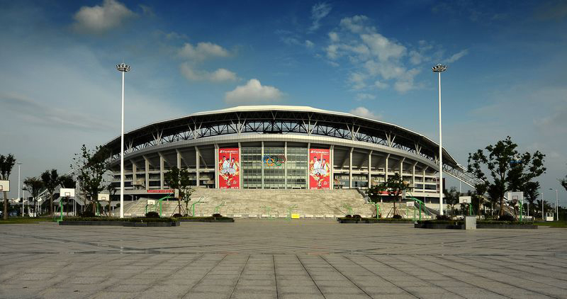 上海周邊的嘉興市體育中心主體育場工程總面積5500平方米,可容納3.5萬名觀眾??磁_采用混凝土框架結(jié)構(gòu),屋蓋采用鋼管拱形桁架結(jié)構(gòu),屋面復(fù)蓋PVC膜材。該工程是目前我國已建和在建體育場館鋼拱形結(jié)構(gòu)中高度最高、跨度最大的工程之一。